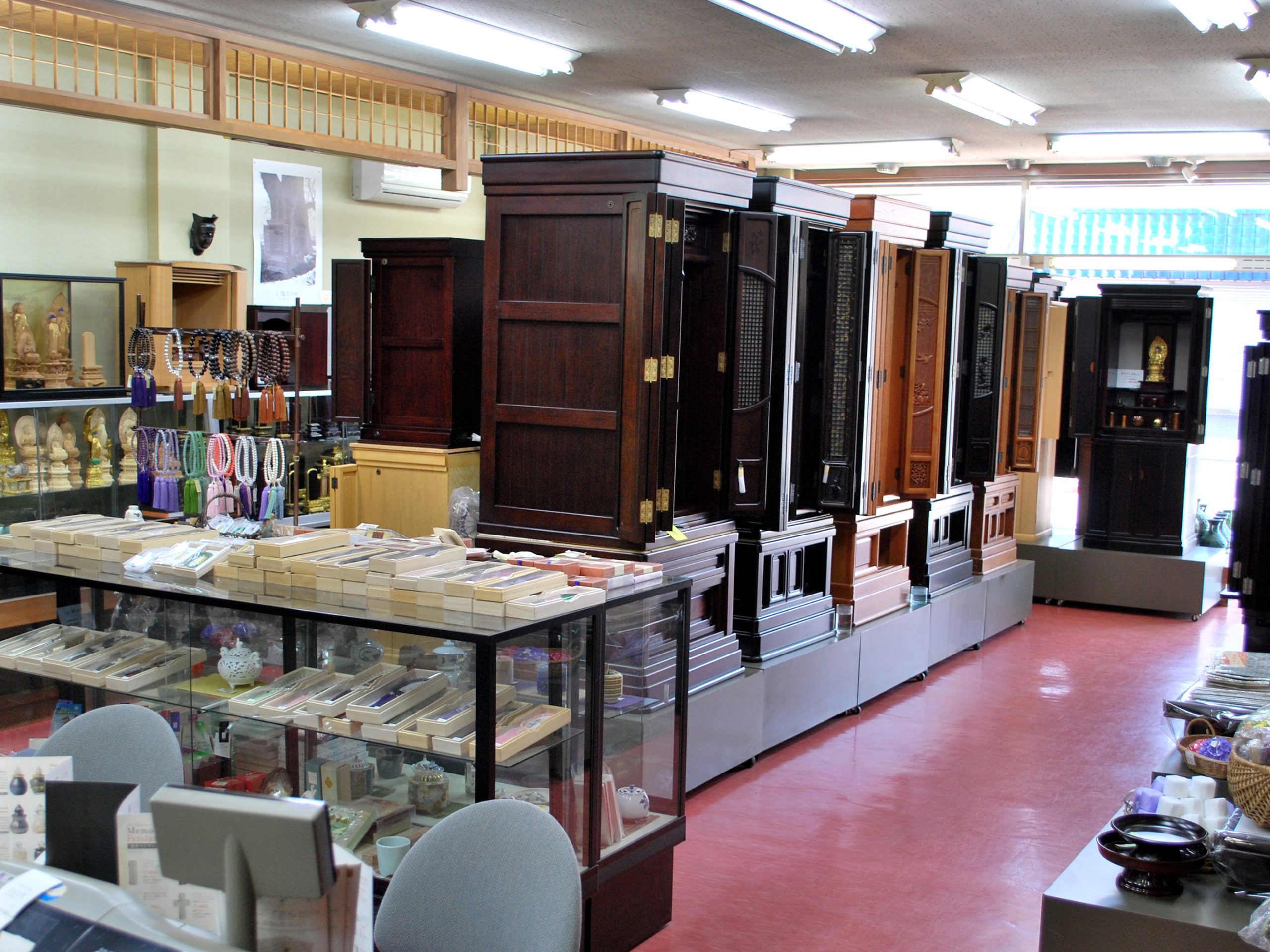 本店にて多数の展示品よりお選びいただくことができます。また、全国各地の製造元よりお取り寄せが可能な通販システムを導入、