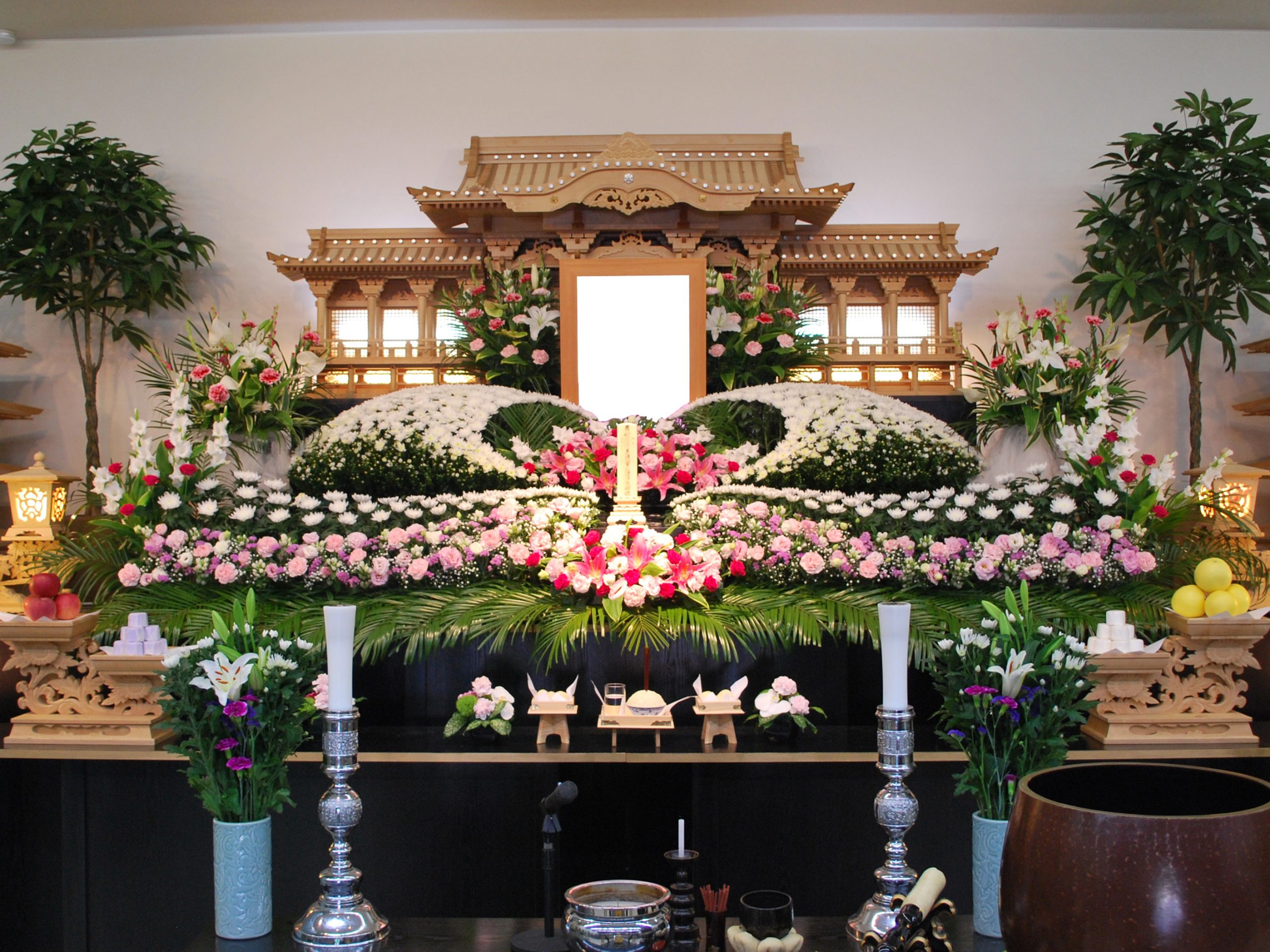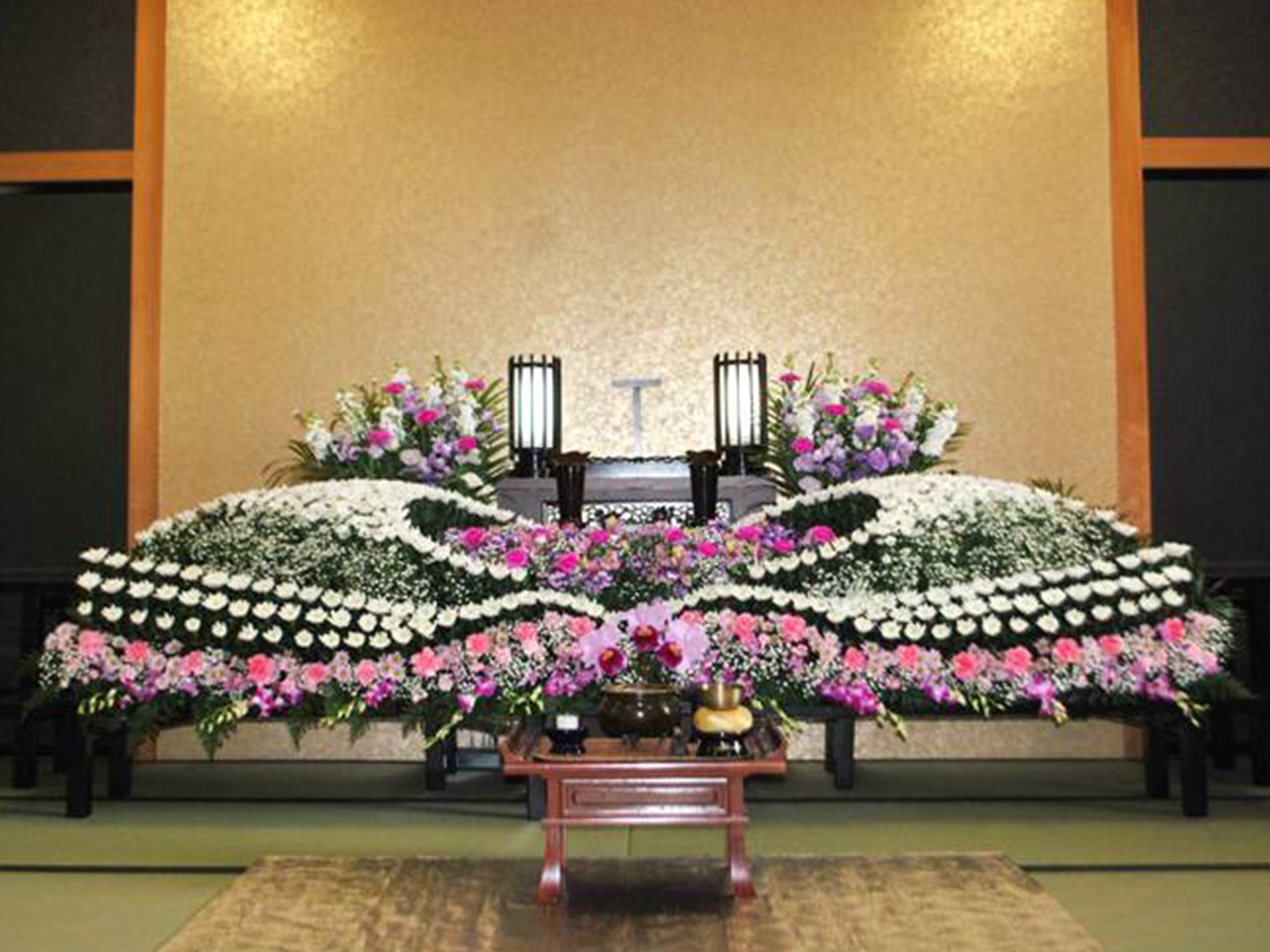 お近いご家族で最期のお別れをされる家族葬や1本1本のお花にまでこだわり抜いた祭壇や付随するもの全てにこだわり品を揃えた