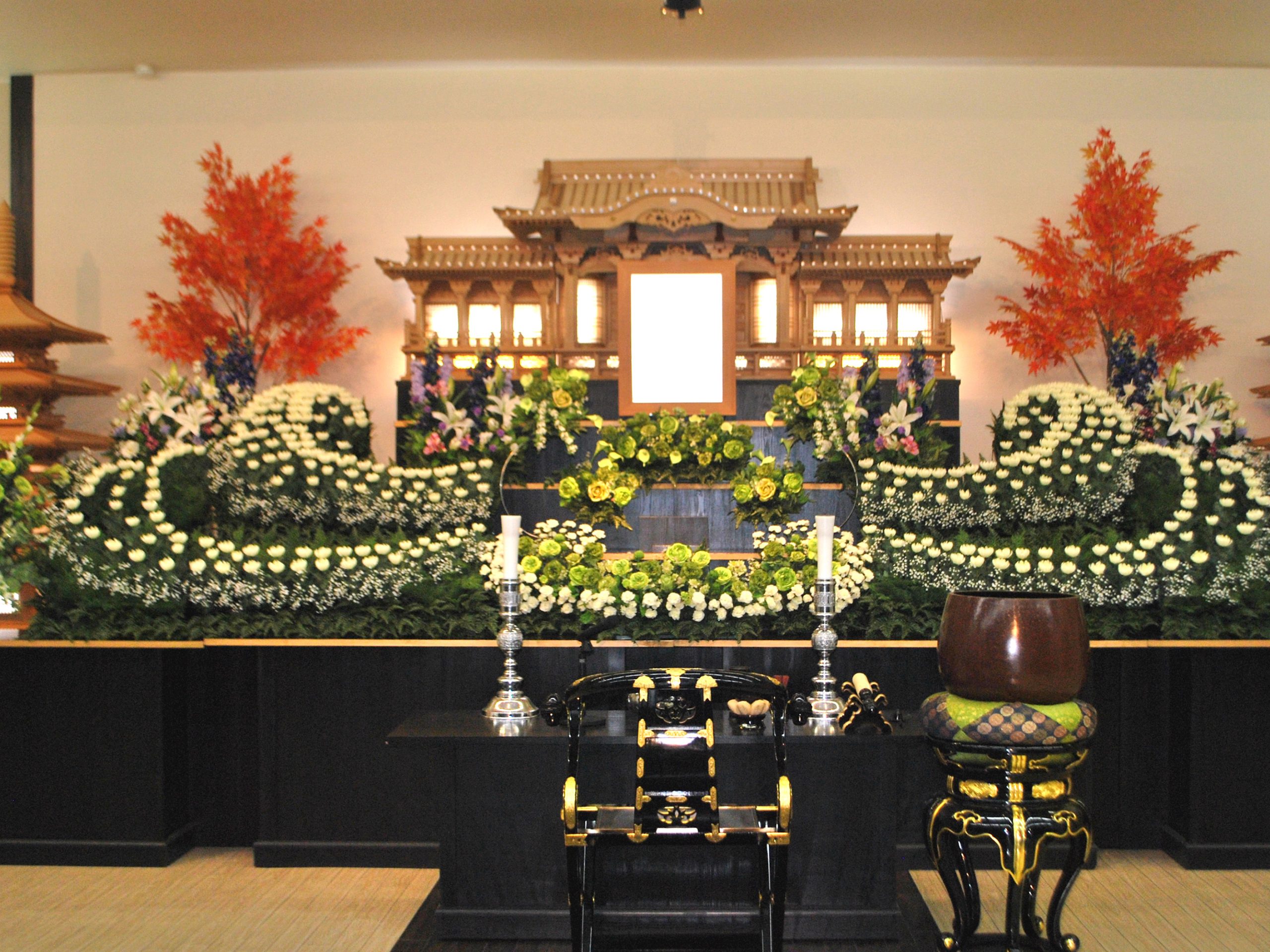 ご葬家の宗旨に合わせ、生前の故人のご遺志、ご家族の偲ぶ思いを形にし、お客様のイメージに添った設営を行います。